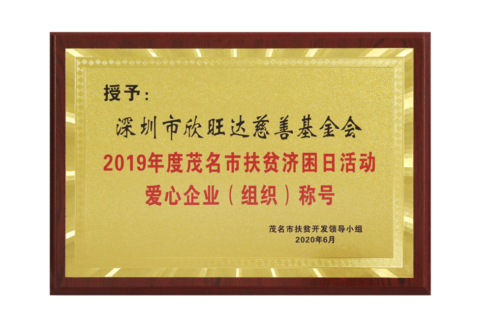 2019年度茂名市扶贫济困日活动爱心企业(组织)称号